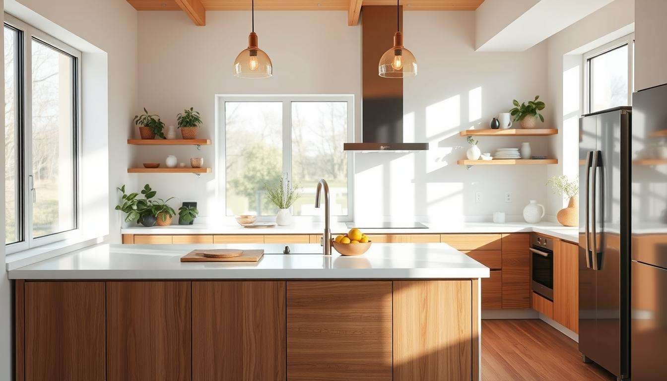 These tools save space and keep things tidy. Add open shelving for stylish bowls or olive oil decanters. It makes your kitchen look like a chef’s dream.