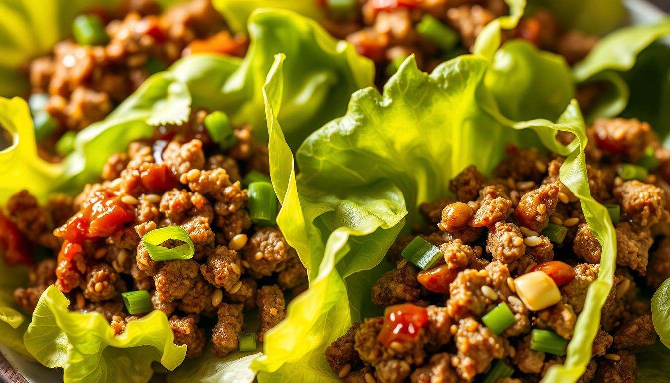 Use crisp lettuce leaves like butter or romaine. Garnish with sliced green onions or crushed peanuts for extra texture.