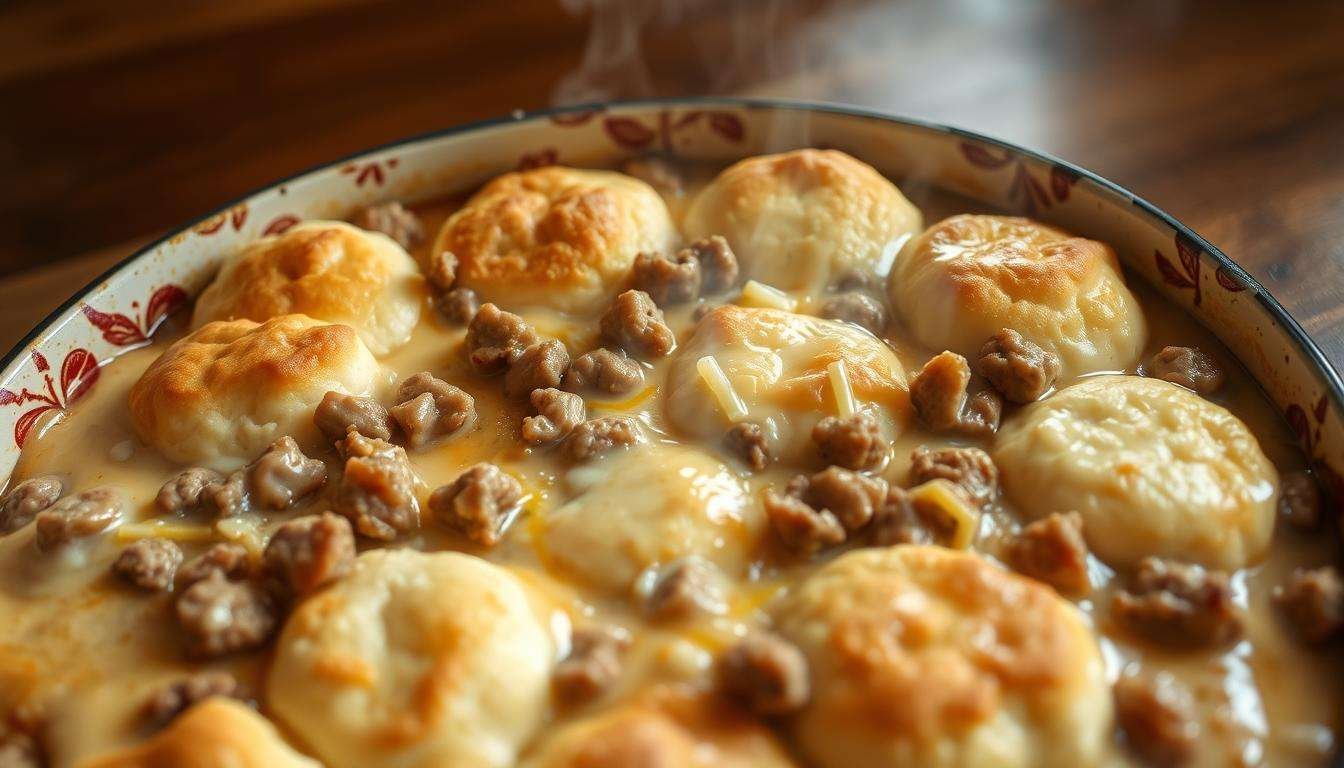 The flavors are pure comfort: flaky layers soak up creamy gravy, while crispy sausage adds a satisfying crunch. A hint of black pepper balances the richness, making every bite irresistible. Even picky eaters clean their plates.