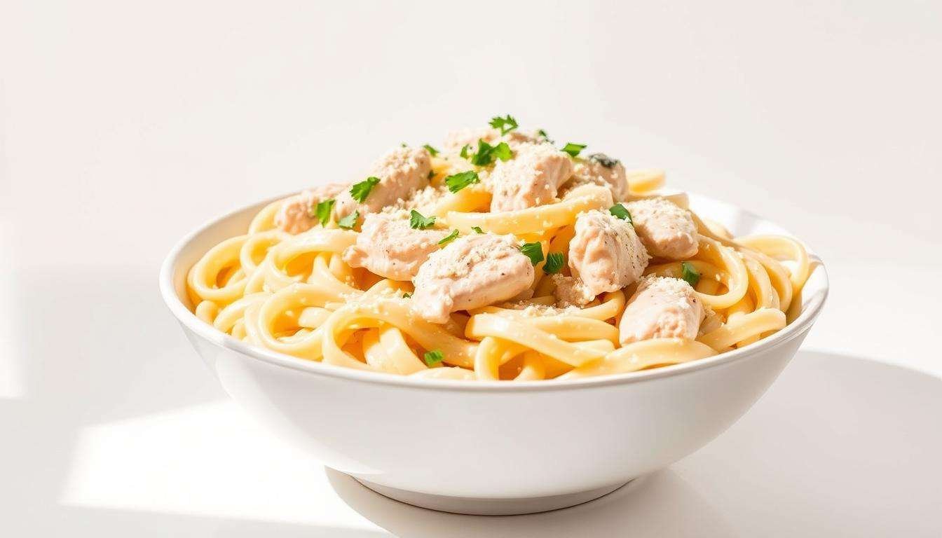 The secret to the creamy texture lies in the alfredo sauce. Parmesan cheese emulsifies with butter and cream, creating a velvety consistency. Unlike restaurant versions that can be clumpy, this sauce stays smooth and coats the pasta perfectly. A splash of pasta water helps achieve the ideal thickness.
