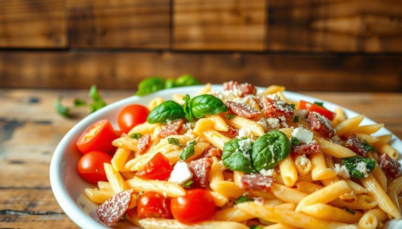Italian pasta salad is a fun canvas for different flavors. Adding a Mediterranean twist makes it even better. It uses fresh ingredients for vibrant tastes.