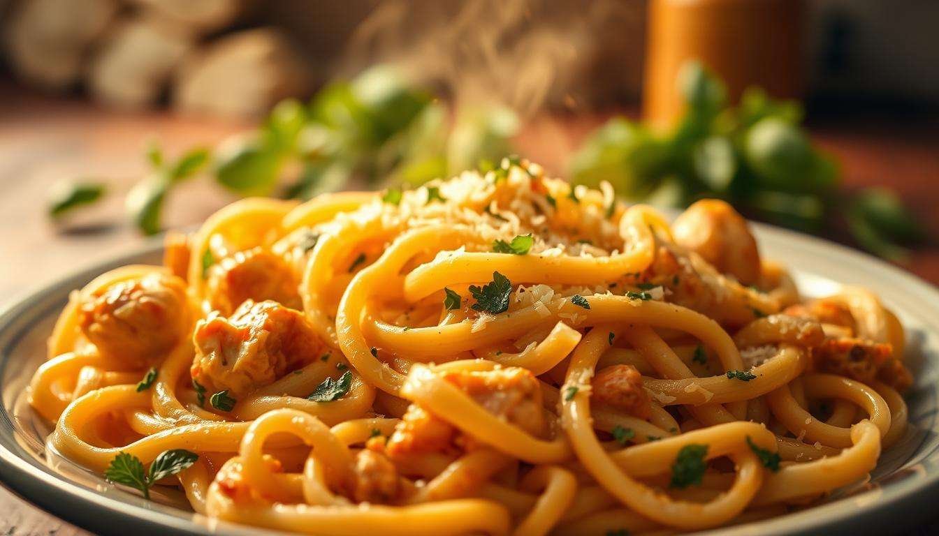 The sauce clings to every ridge of the pasta, ensuring maximum flavor in every bite. You can customize the spice level with red pepper flakes, adding just the right amount of heat. Whether you use fresh or rotisserie chicken, the result is equally delicious.