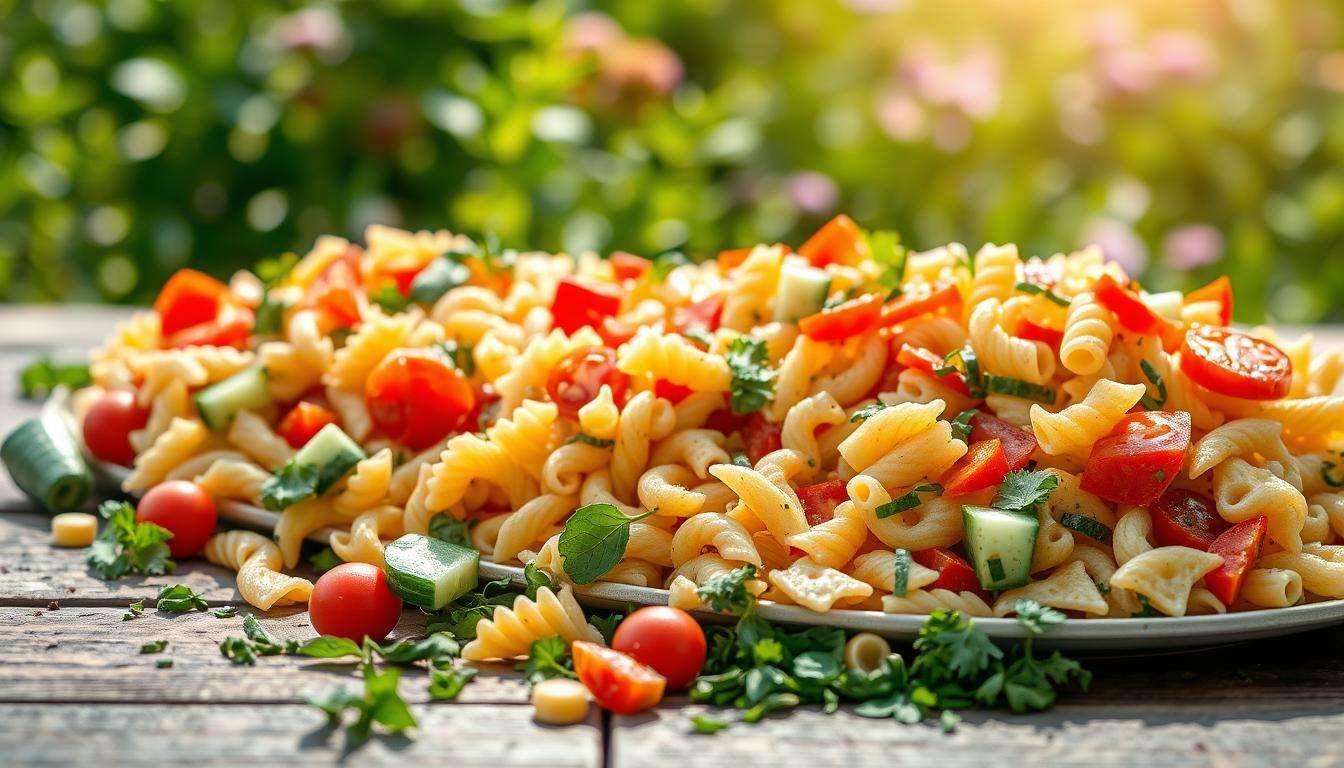 Making a great pasta salad starts with picking the right ingredients. Each part is important for flavor and texture. Knowing how to pick pasta, veggies, and herbs, and adding protein makes a tasty salad.